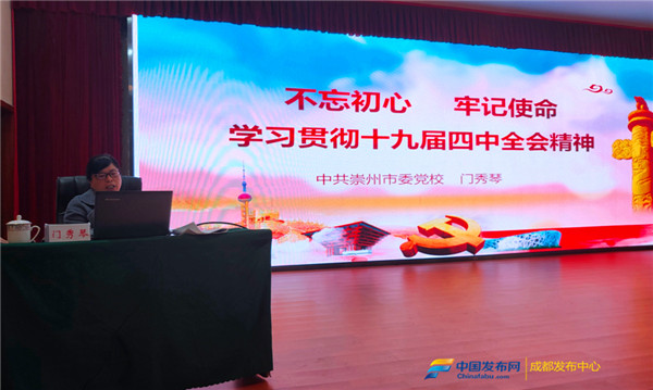 中國發(fā)布網(wǎng)成都訊(丁志學(xué)) 12月12日上午,崇州市個私黨工委在四川旺達集團召開學(xué)習(xí)貫徹黨的十九屆四中全會精神專題黨課報告會。崇州市委黨校副校長門秀琴應(yīng)邀作了《不忘初心牢記使命學(xué)習(xí)貫徹十九屆四中全會精神》的專題報告。會議由個私黨工委委員柯蓉主持。個私黨工委所屬37家會員企業(yè)黨支部書記、黨員代表共計43人參加會議,并參觀了旺達公司黨群活動室、優(yōu)秀員工事跡展示、宣傳走廊等,聽取了旺達公司董事長、黨支部書記唐志偉,總裁辦主任張小娟介紹的公司黨建和關(guān)心下一代工作。