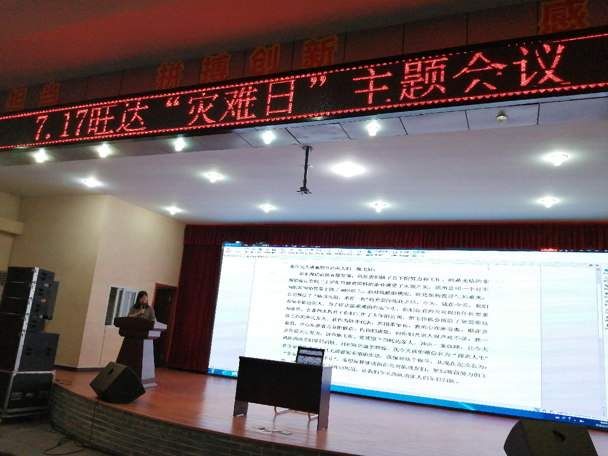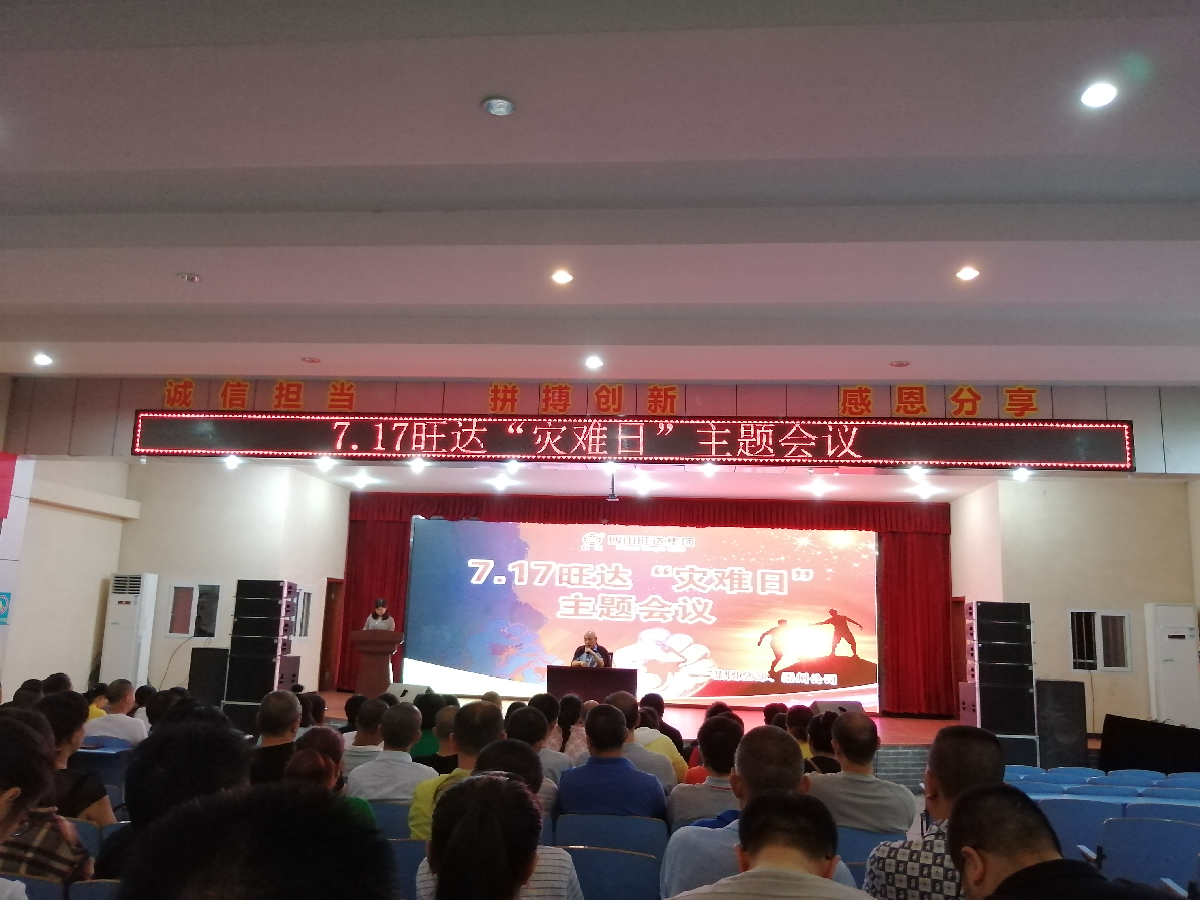2020年7月17日,這天上午的天氣就像去年7月17日縈繞在所有旺達(dá)人心里的陰雨沉重而又悲傷。在這一天旺達(dá)開(kāi)展了7.17“災(zāi)難日”主題會(huì)議活動(dòng),參加對(duì)象為旺達(dá)總部和崇州分公司所有人員。活動(dòng)主持人由內(nèi)務(wù)副總裁徐燕擔(dān)任?!胺俏量嚯y歷歷在目,領(lǐng)導(dǎo)員工暗暗凝噎?!薄叭蝿?chuàng)業(yè)徐徐啟航,齊心協(xié)力蒸蒸日上”?,F(xiàn)場(chǎng)的兩條標(biāo)語(yǔ)不僅將在場(chǎng)的所有人帶回了去年的黑色7月中,也讓所有人內(nèi)心升起對(duì)未來(lái)的期望。