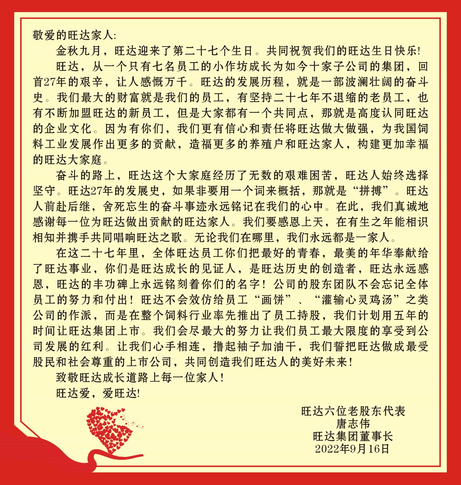 致全體旺達家人的一封感謝信