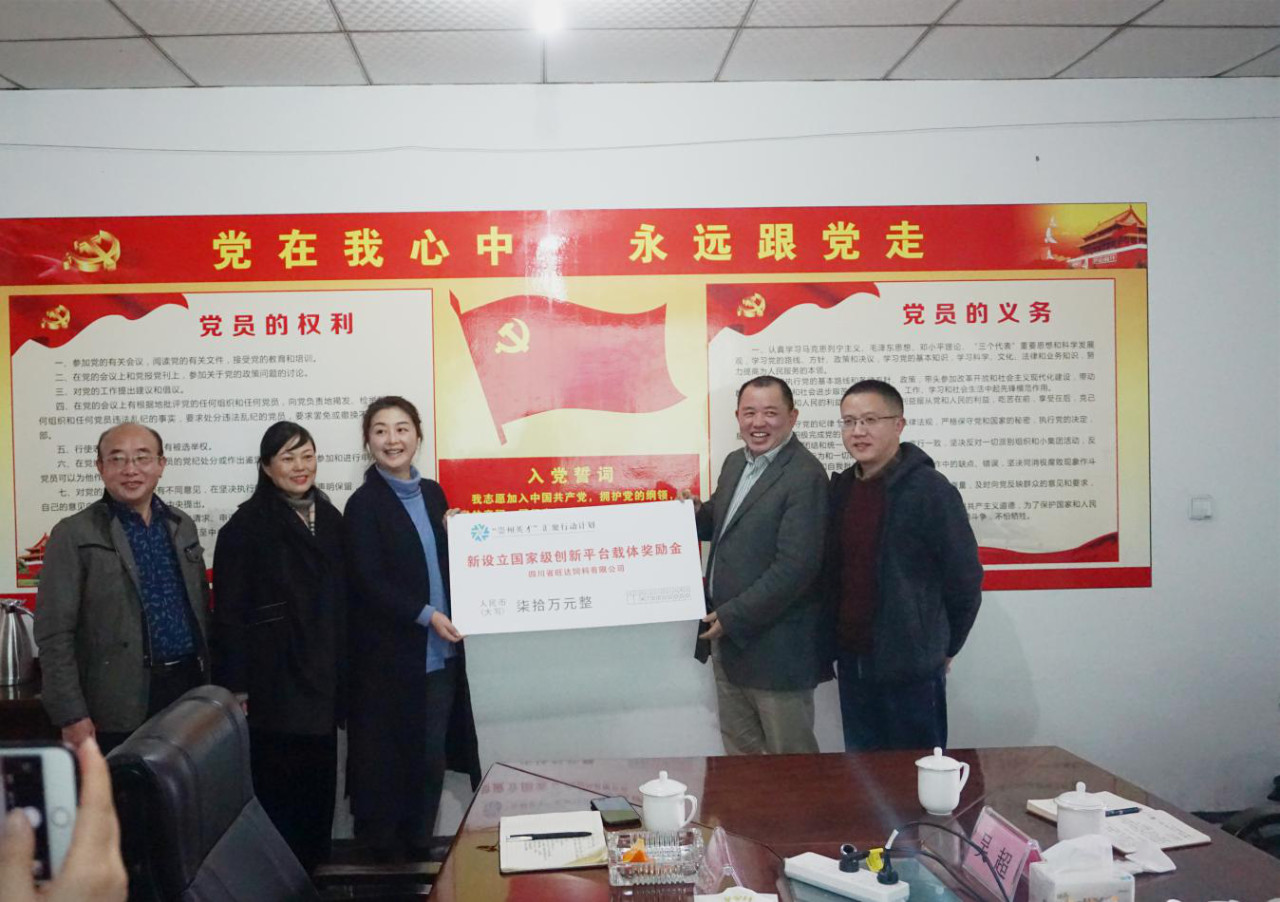 崇州市委組織部常務副部長、市人才工作領導小組辦公室主任胡青卿到四川旺達集團調(diào)研國家級企業(yè)技術中心建設情況,并給企業(yè)頒發(fā)了崇州市“新設立國家級創(chuàng)新平臺載體”獎勵資金70萬元